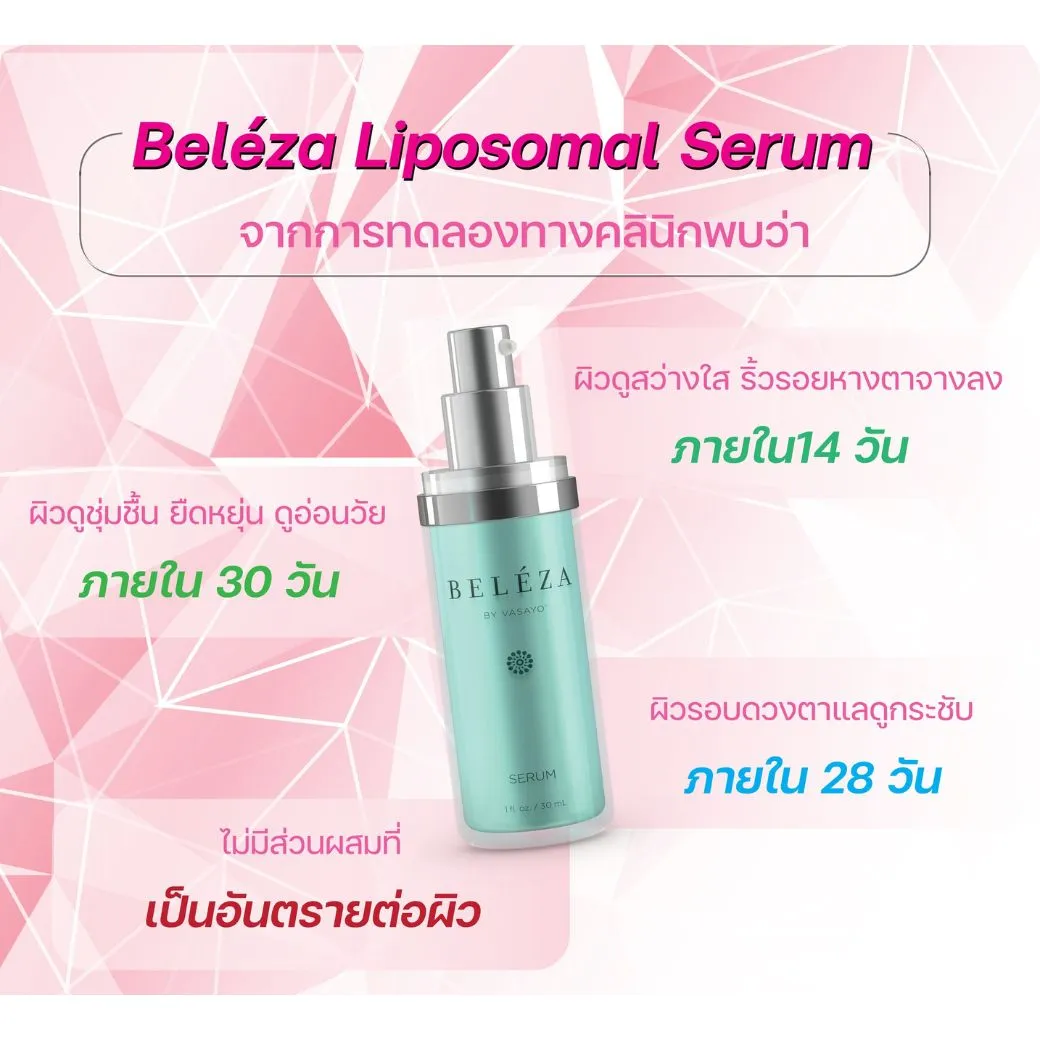 Beleza Serum Vasayo เบเลซ่า เซรั่ม วาซาโย ผสมผสาน 2 เทคโนโลยีเข้าด้วยกันนั่นคือ Fensebiome และ Eyeseryl ที่มีความสามารถในการเพิ่มสุขภาพผิวพรรณถึงขั้นลึกสุดของผิวได้อย่างมีประสิทธิภาพ